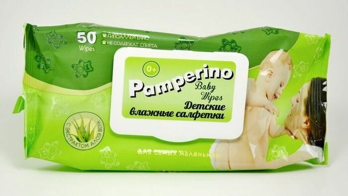 PAMPERINO Влажные салфетки Pamperino детские, с алоэ вера, 50 шт. Микс. "Микс" - один из товаров представленных на фото, без возможности выбора.