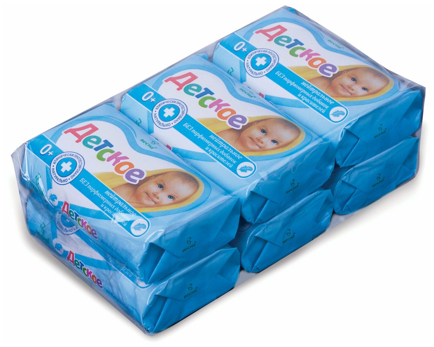 Мыло туалетное 90 г детское (Весна), нейтральное, без отдушек и красителей, 6 шт.