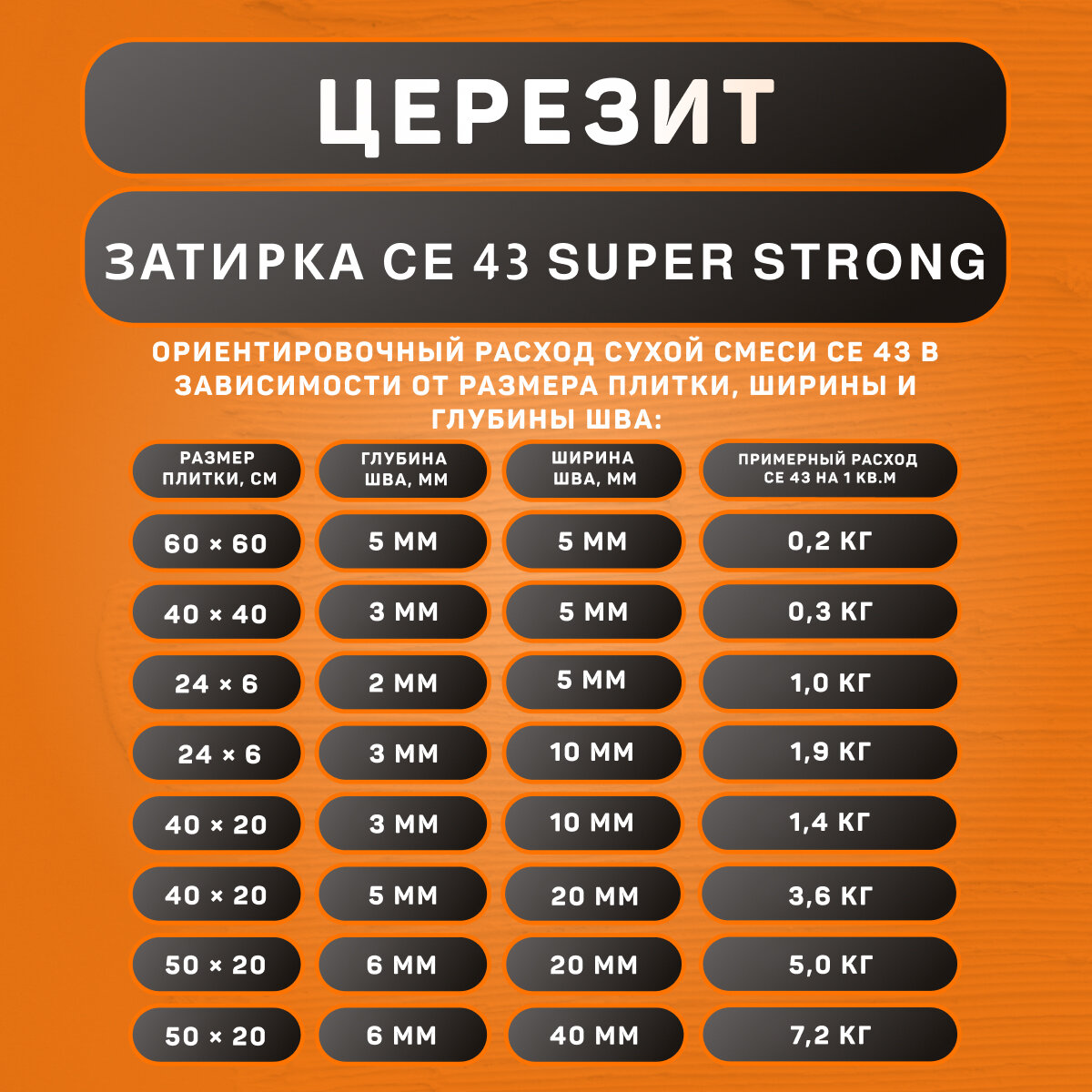 Затирка Ceresit CE 43 Super Strong №02 дымчато-белая 25 кг информация: