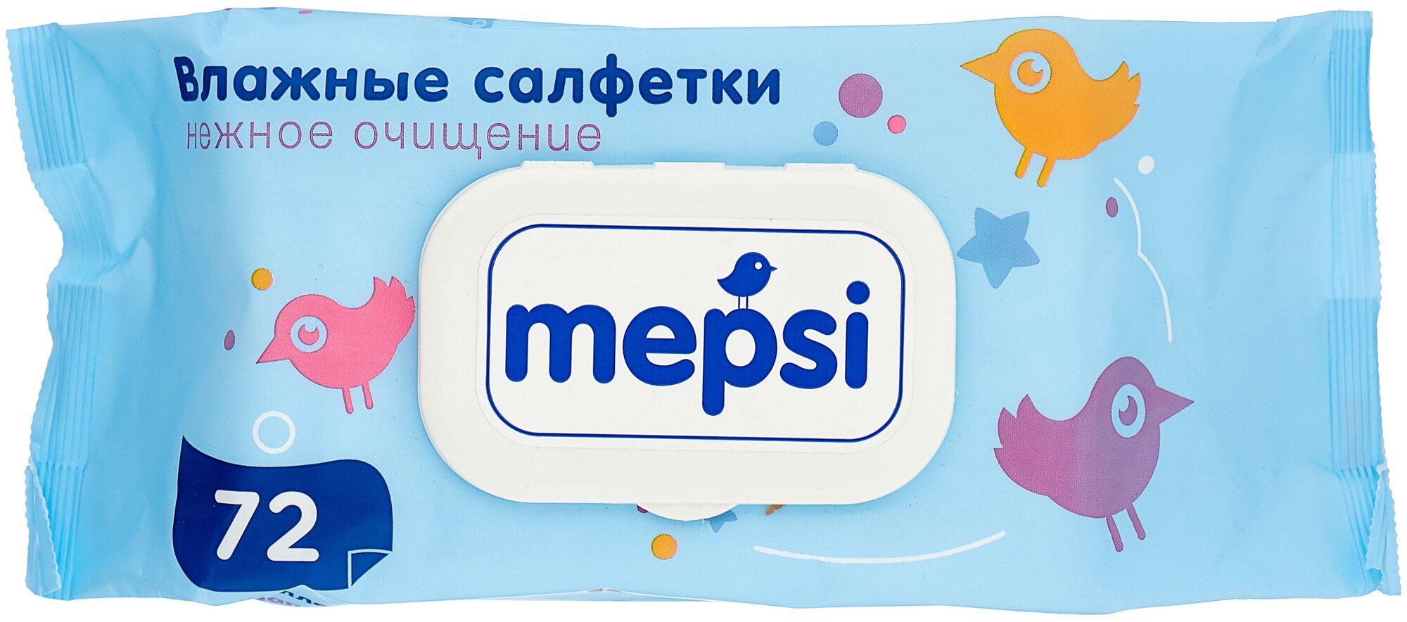 Влажные детские салфетки MEPSI, 72 шт. с клапаном информация: