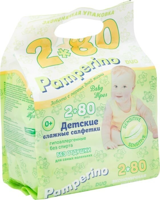PAMPERINO Салфетки влажные , детские, без отдушки, 80 шт., 2 уп /
