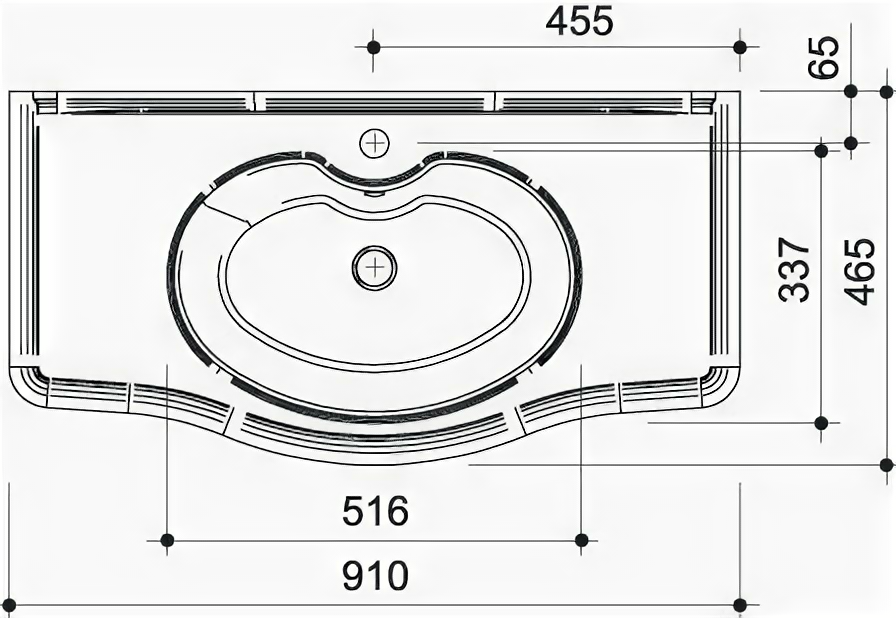 Накладная раковина в ванную комнату "Океан 90 правая", белая, 90х40