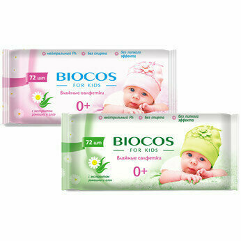 Салфетки влажные BIOCOS для детей, уп.72 информация:
