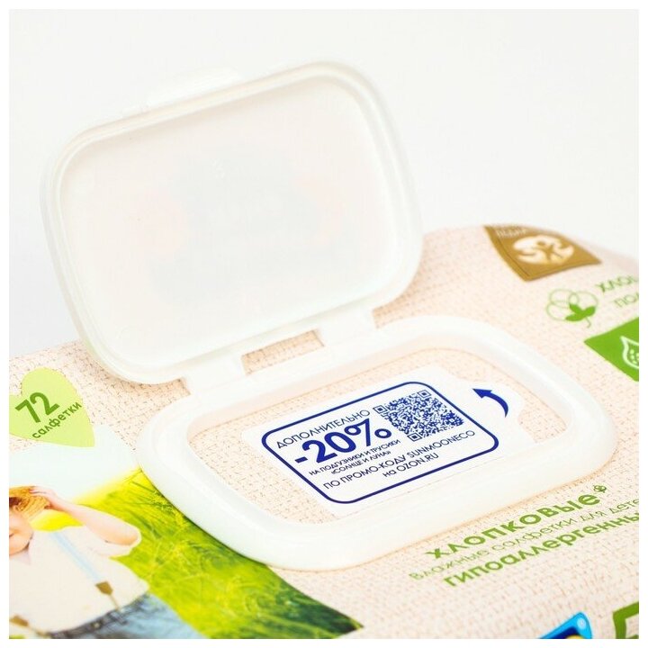 Влажные салфетки детские льняные с крышкой 432шт (72 шт х 6), солнце И луна 579 ₽