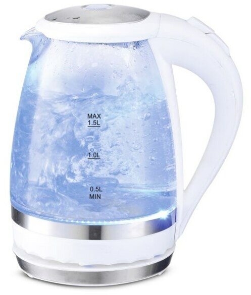 Чайник электрический 1,5 л. стеклянный Kamille KM-1701A (белый) с синей LED подсветкой (6) информация: