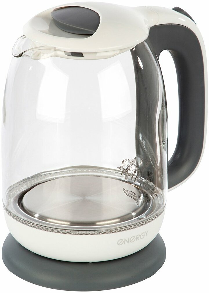 Чайник ENERGY E-281 (1.7л) стекло, пластик, цвет бело-серый