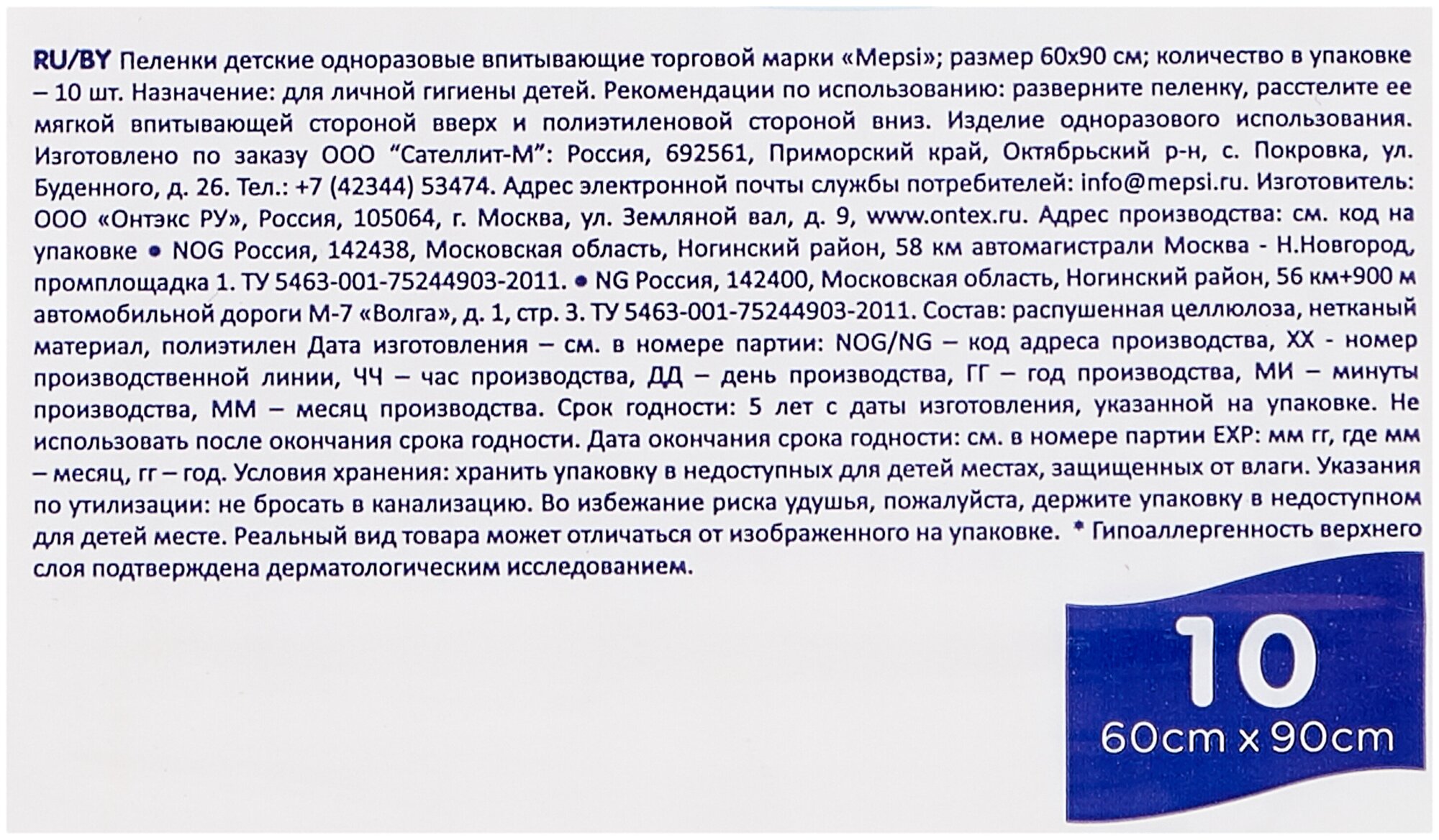 Одноразовая пеленка Mepsi 60х90, 10 шт. информация: