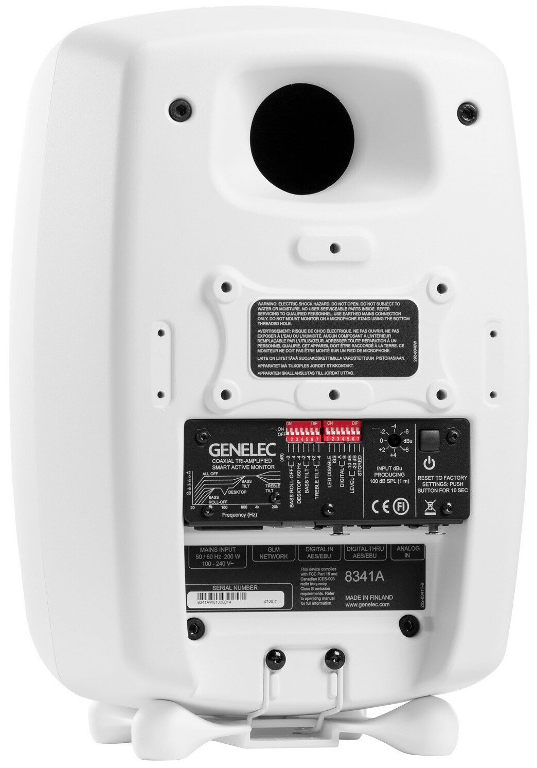 Genelec 8341AP активный 3-полосный коаксиальный монитор ближнего поля. 2 овальных НЧ 7"x4" 250Вт, СЧ коаксиальный 3.5" 150Вт+ВЧ 0.75" 150Вт. Подставки. Поддержка GLM калибратора. Вход: аналог. XLR, вх/вых цифр. XLR (AES/EBU), 2xRJ45 для работы с GLM систе
