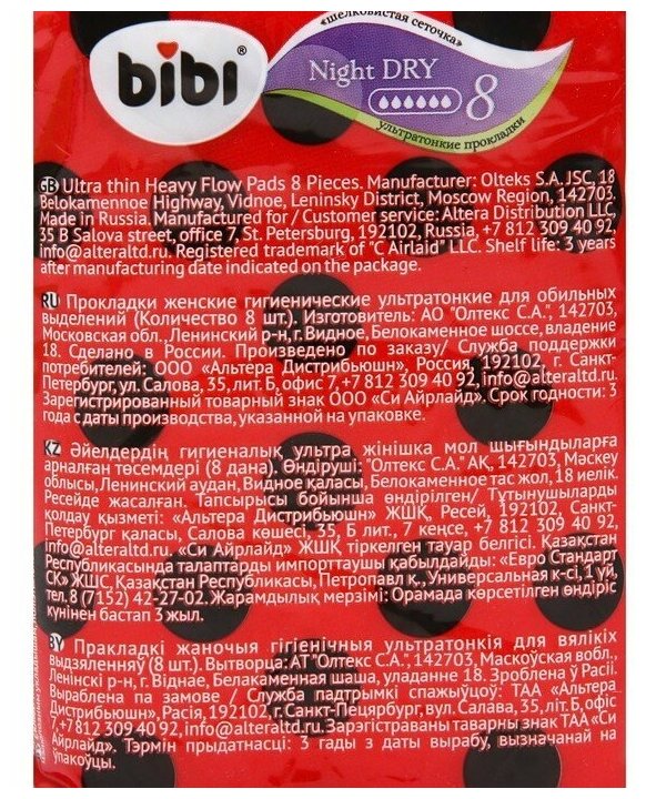 Прокладки гигиенические BiBi (гигиена) "Super Night Dry" для критических дней, ультратонкие, 8 шт