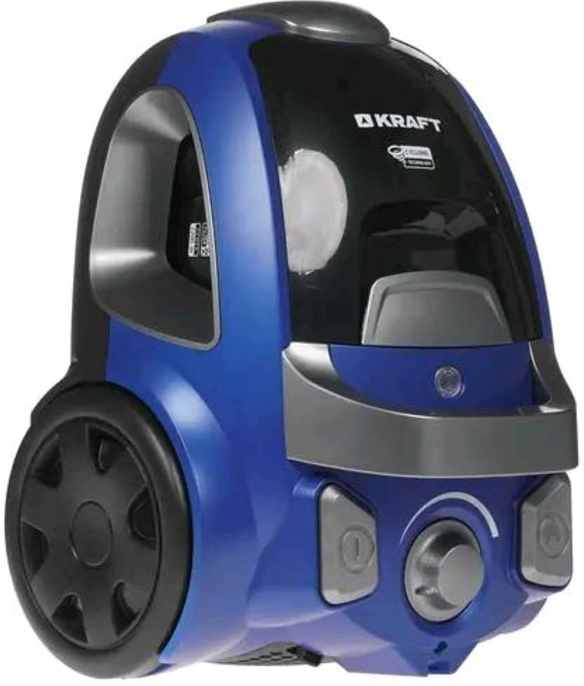Пылесос Kraft KF-KVC 259, 2200 Вт, технология циклон, контейнер 2 л, HEPA-фильтр, синий/серый
