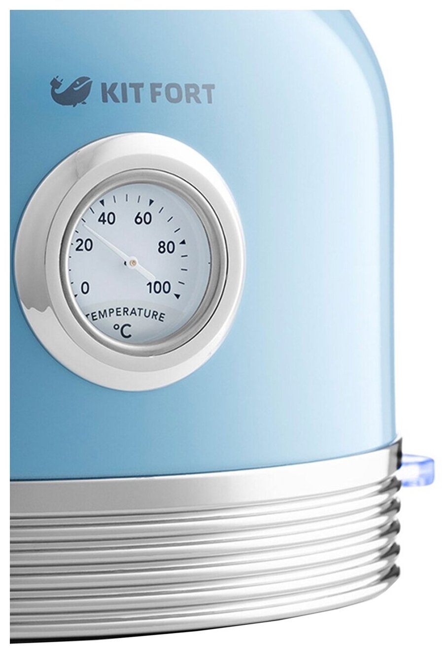 Чайник электрический Kitfort KT-634-4, металл/пластик, 1.7 л, голубой информация: