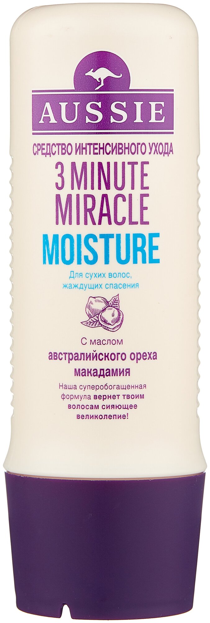 Aussie 3 Minute Miracle Moisture Средство интенсивного ухода для сухих и поврежденных волос, 250 мл, бутылка информация: