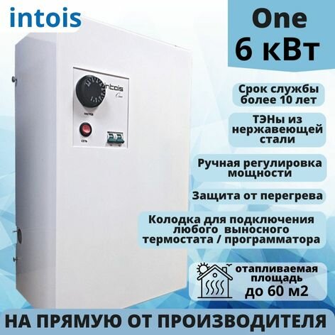 Электрический котел отопления, электрокотел Интоис One, 6 кВт, настенный, одноконтурный. информация: