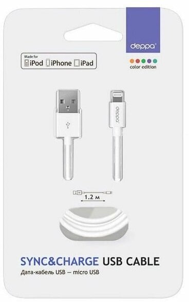 Кабель Deppa USB – Apple Lightning MFI 1.2m White информация: