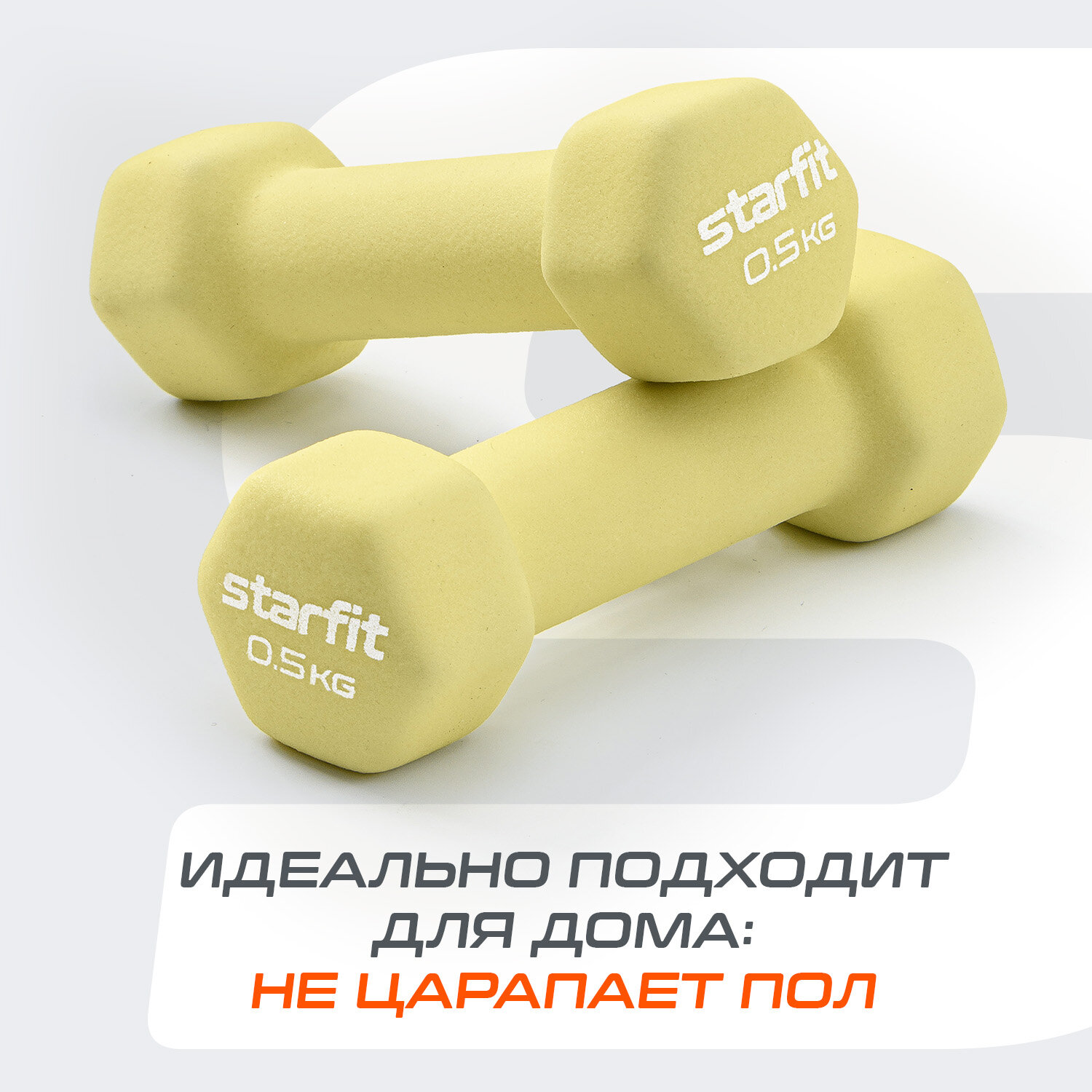 Гантель неопреновая DB-201 0,5 кг, желтый пастельный, Starfit