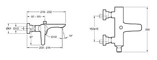 Смеситель на раковину настенный Эверест B46-350 с круглым поворотным изливом, кран-буксы 1/2", хром