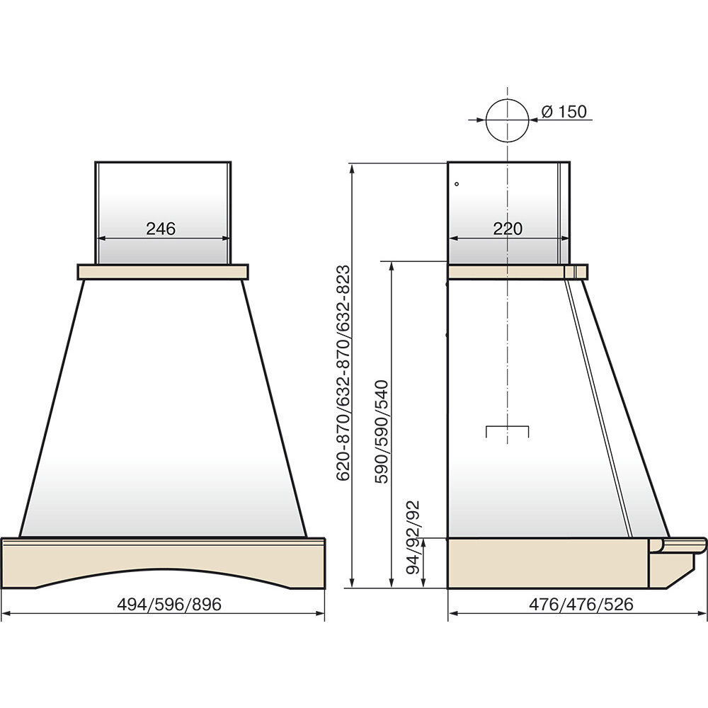 Вытяжка каминная Elikor ADELE 90П-650-П3Д белый/бежевый, (942327)