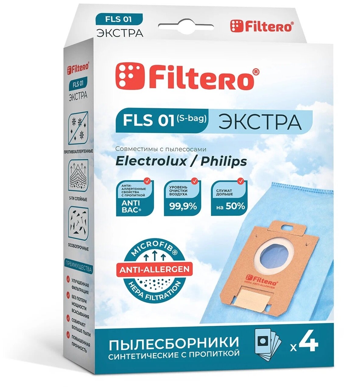 Набор пылесборников Filtero FLS 01 (S-bag) (4) экстра Anti-Allergen