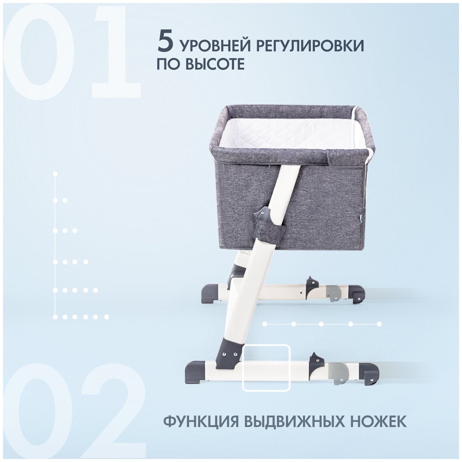 Детская приставная кроватка Nuovita Accanto (Grigio scuro Lino/Темно-серый лён) информация:
