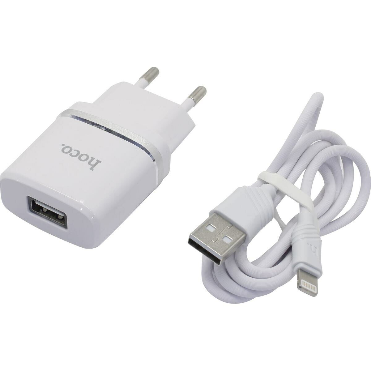 Зарядное устройство Hoco C11 Single USB, Lightning cable, 1.0A, белый