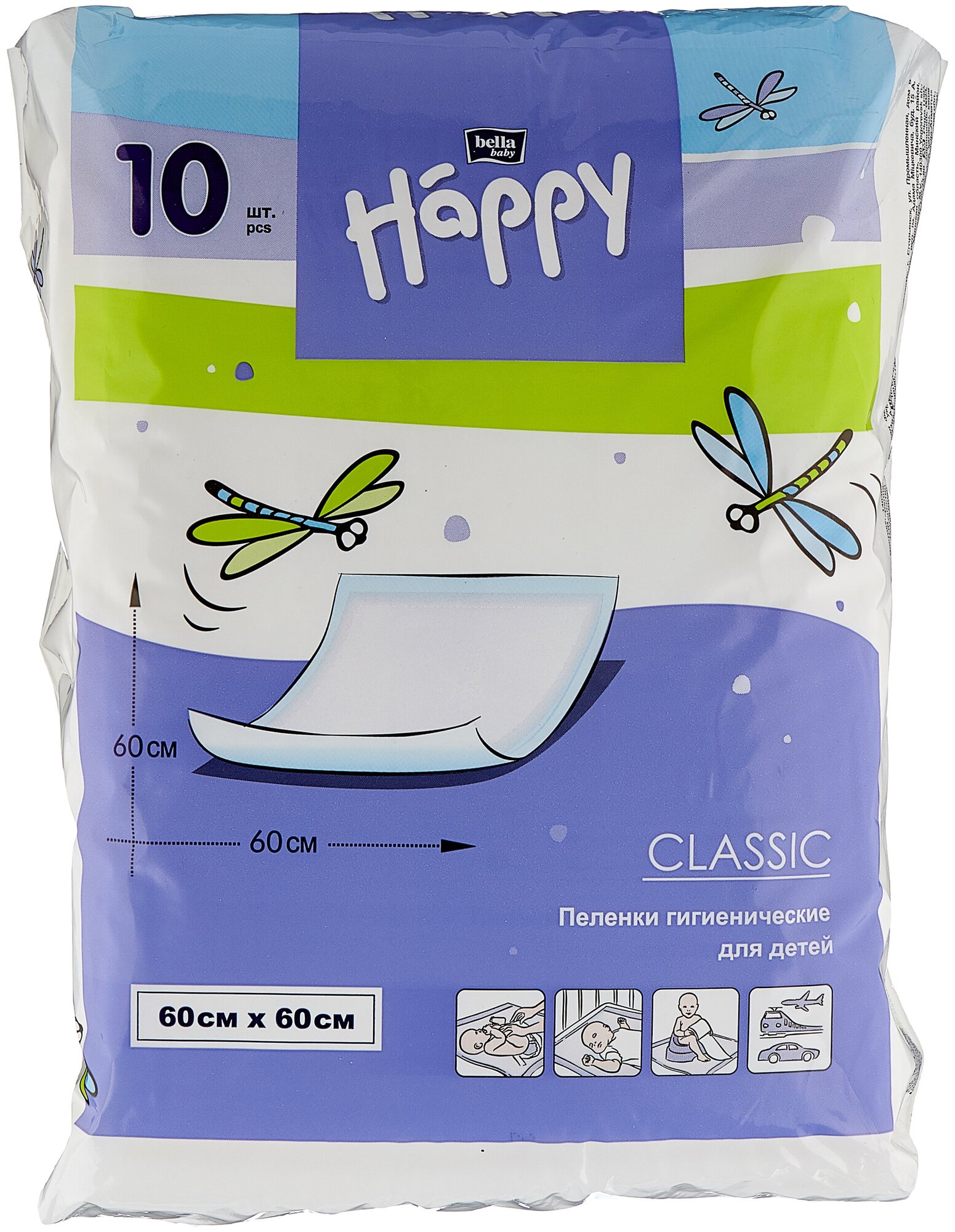 Пелёнки гигиенические HAPPY Classic 10шт 60*60 дет. информация: