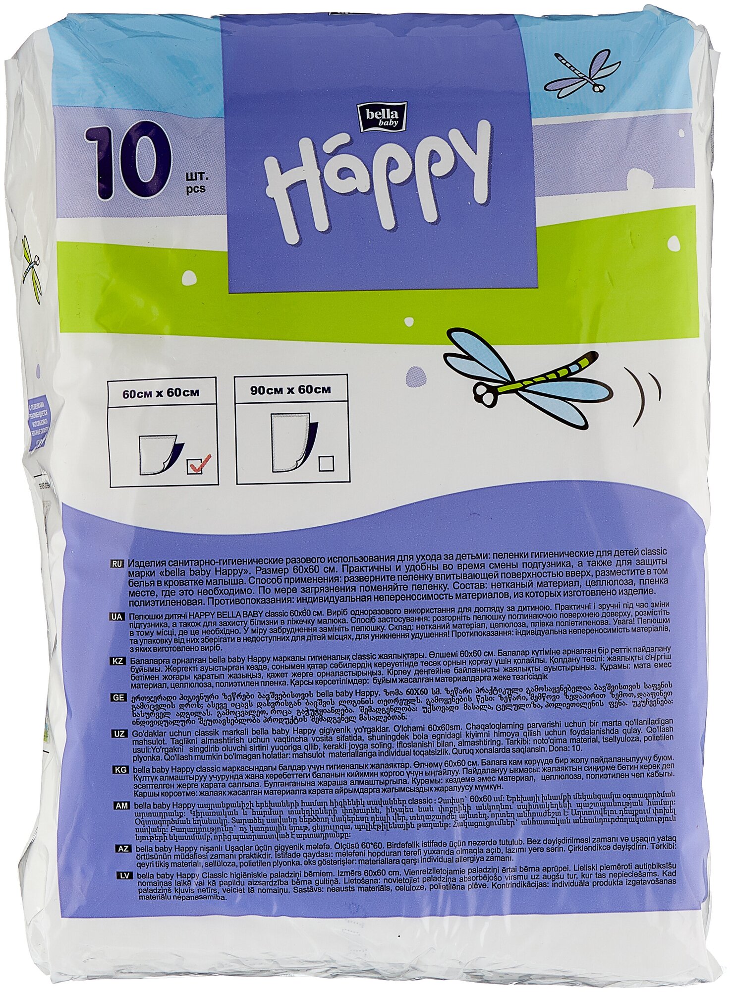 Пеленки для детей bella baby Happy classic 60 x 60 см впитывающие одноразовые, 10 шт.