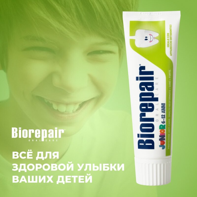 Зубная паста Biorepair Junior со вкусом мяты (от 6 до 12 лет) информация: