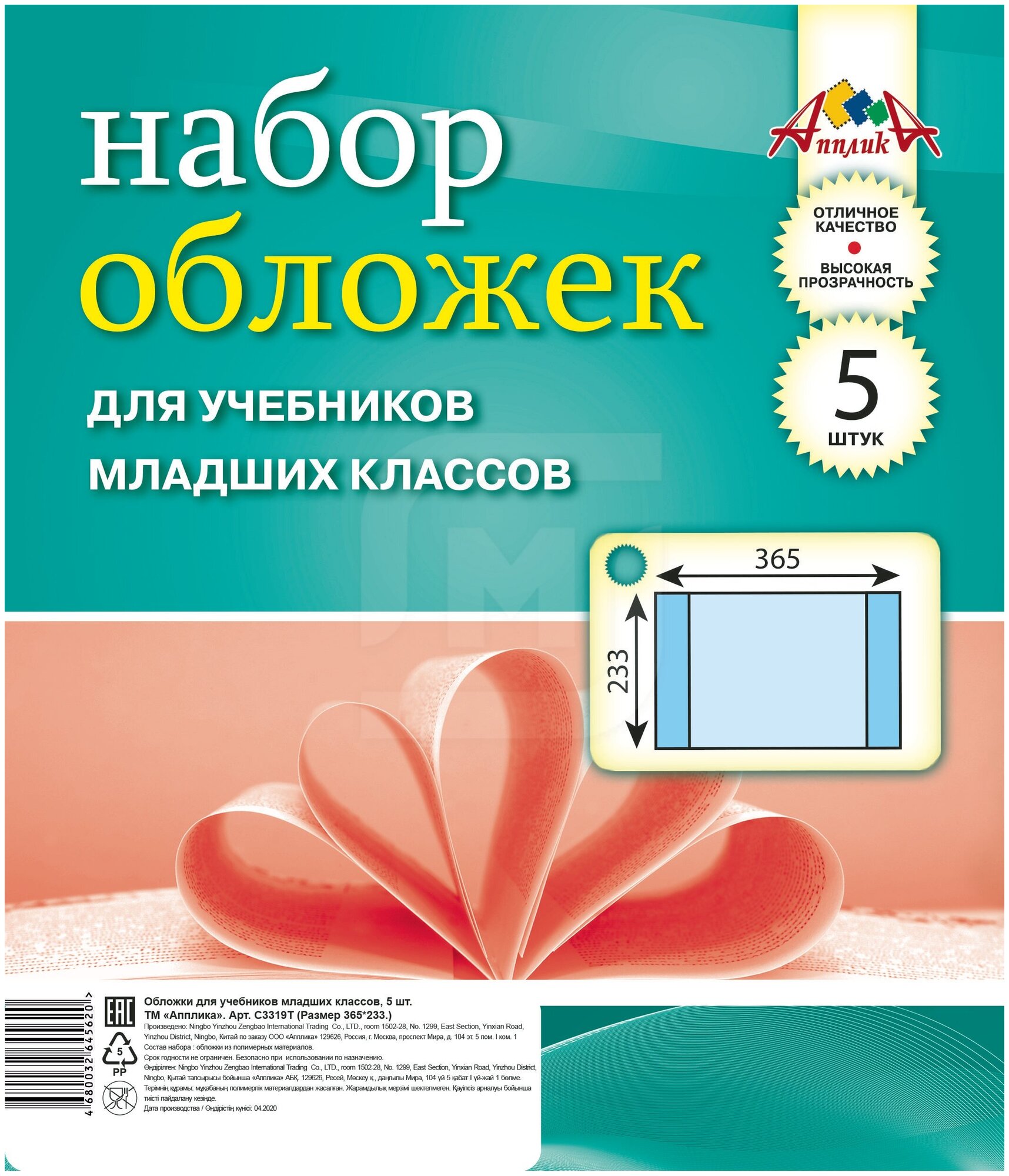 Набор обложек для учебников 5шт 110 мкм 233х365мм С3319 80мкм информация: