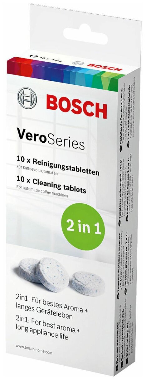 Таблетки для очистки кофемашин от эфирных масел Bosch VeroSeries TCZ8001 белые 10 шт