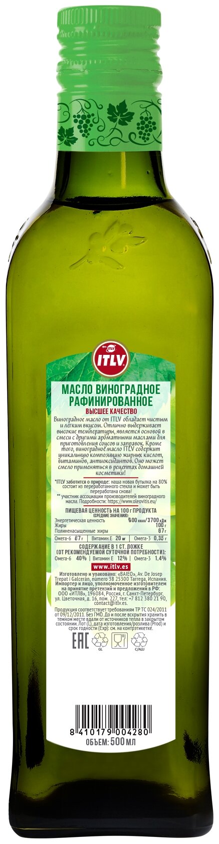 Масло виноградных косточек ITLV рафинированное, 0.5 л информация: