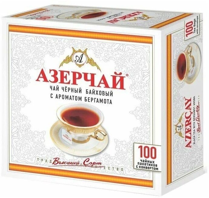 Чай черный Азерчай с бергамотом в пакетиках с конвертом, 100 пак., 6 уп.