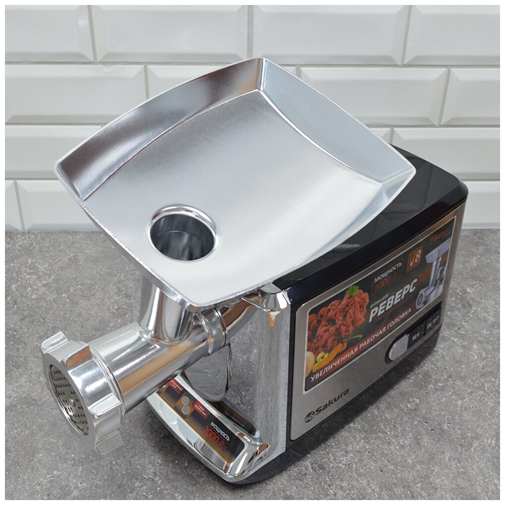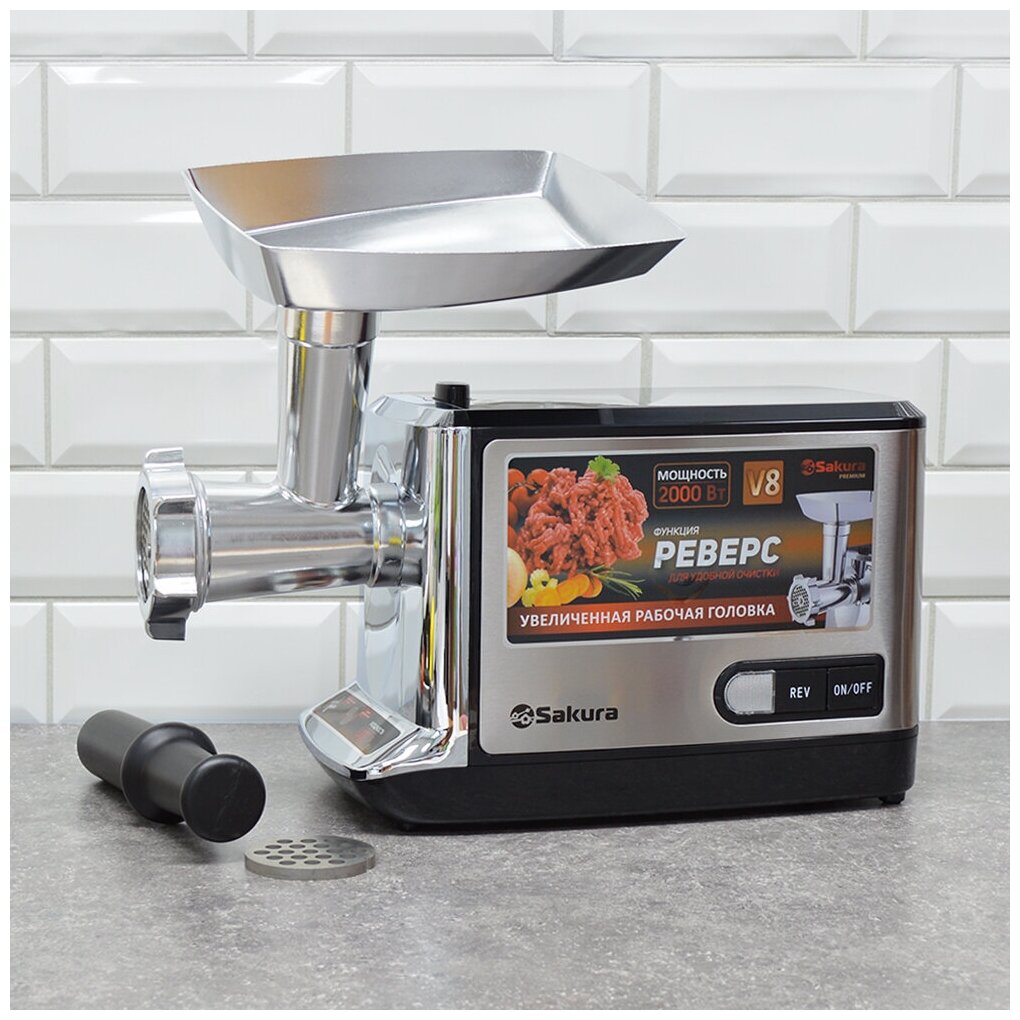 Отзывы на Мясорубка Sakura SA-6419BK, 2000 Вт, 2 кг/мин, реверс, серибристо-чёрная 9438291
