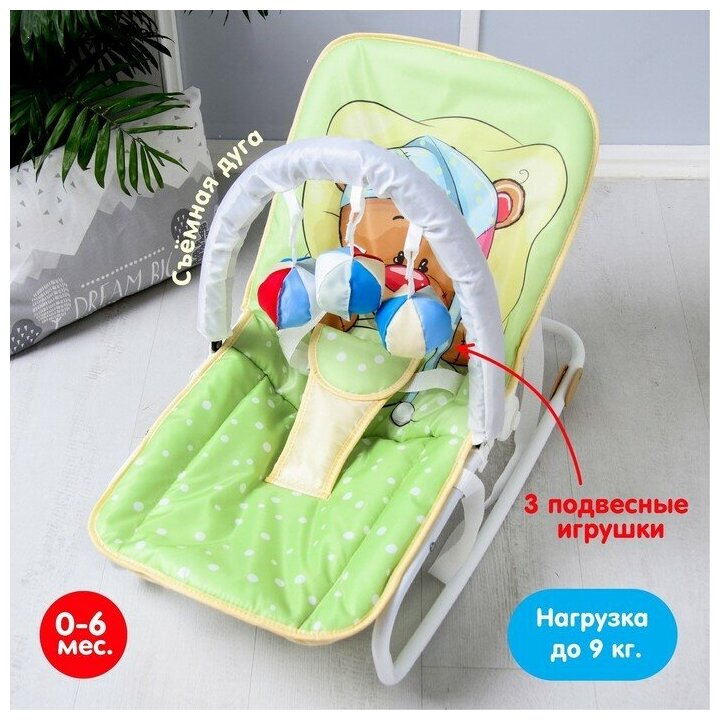 Шезлонг - качалка для новорождённых Мишка под одеялком, игровая дуга, игрушки микс 4895310 . информация: