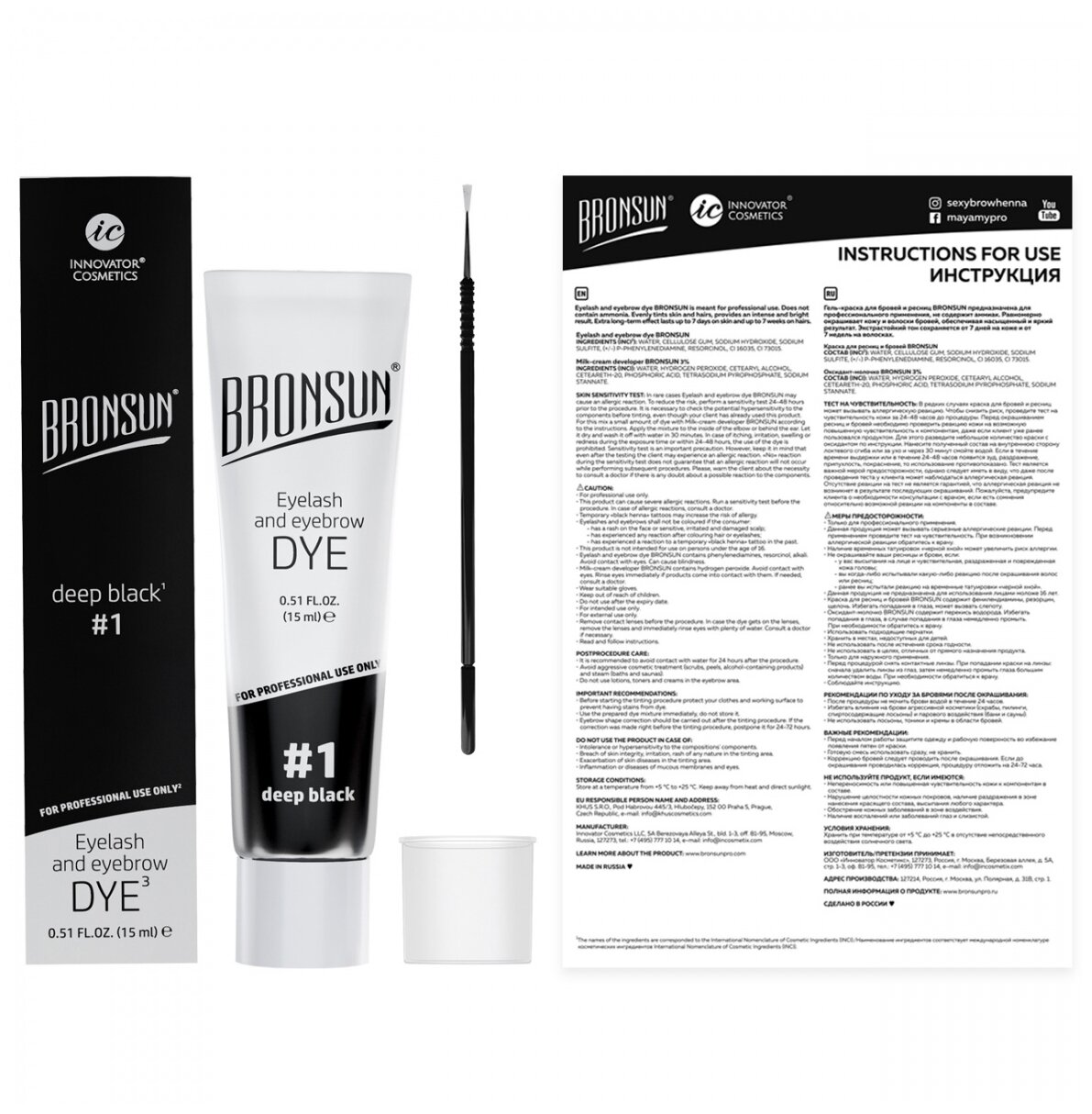 Innovator Cosmetics, Bronsun, Краска для бровей и ресниц, №1 черный, 15 мл (1/12шт)