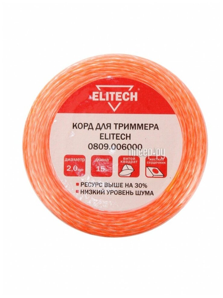 10 цен на Корд триммерный ELITECH 2.0мм 15м би-материал витой квадрат блистер