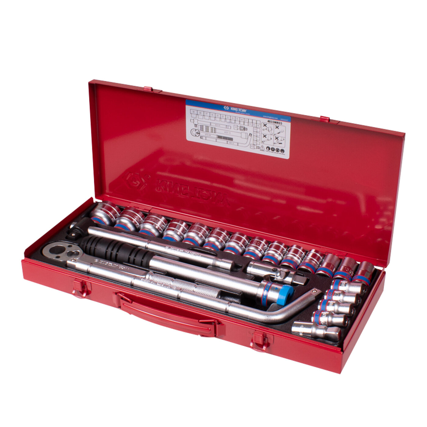 4033MR KING TONY Набор торцевых головок с принадлежностями 1/2", 12гр., 10-32 мм, 24 предмета 4033MR