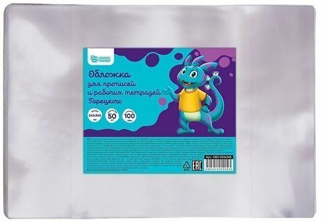 Обложка для прописей и рабочих тетрадей Горецкого ПВХ 100 мкм Schoolformat 243х345 мм информация: