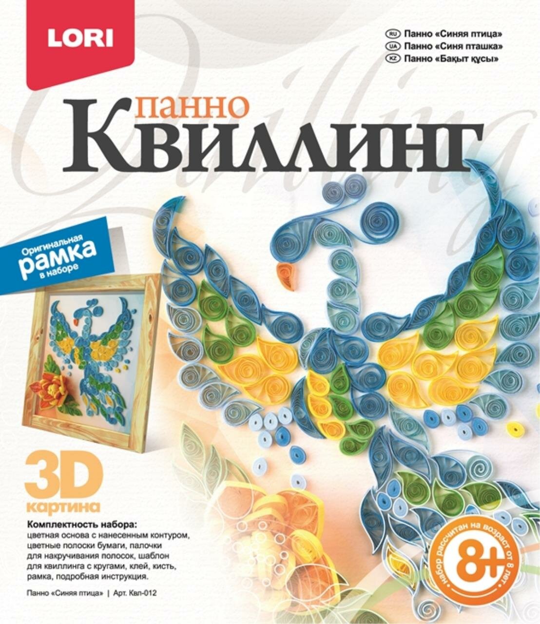 Квиллинг-панно Lori 3D "Синяя птица", с рамкой, картонная коробка Lori 227579 информация: