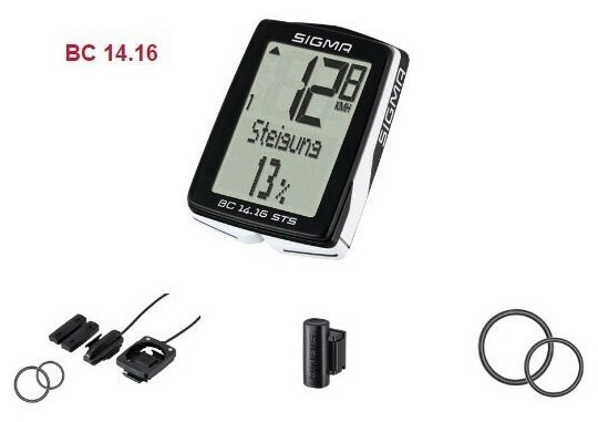 Велокомпьютер Sigma, BC 14.16, 01416,14 функций, проводной, черно-белый информация: