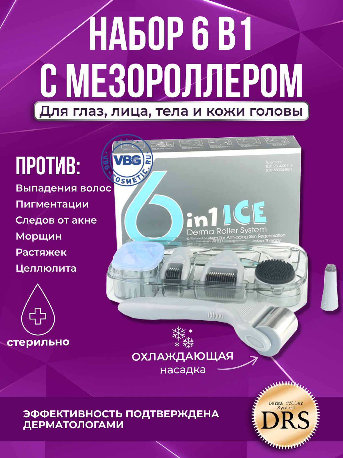 DRS Набор мезороллер 6 в 1 с охлаждающей насадкой, брашингом и насадками для лица и тела информация: