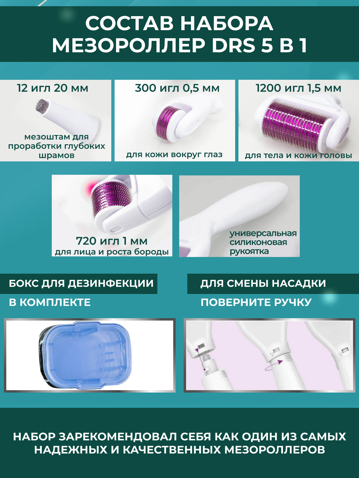 Отзывы на DRS Набор мезороллер 5 в 1 для лица, тела и зоны вокруг глаз, c титановым напылением