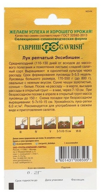 Лук репч. Эксибишен 0,2г Позд (Гавриш) информация: