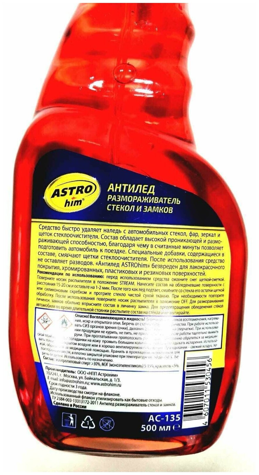 Смазка ASTROhim антилед размораживатель стёкол и замков 0.5 л 1 информация:
