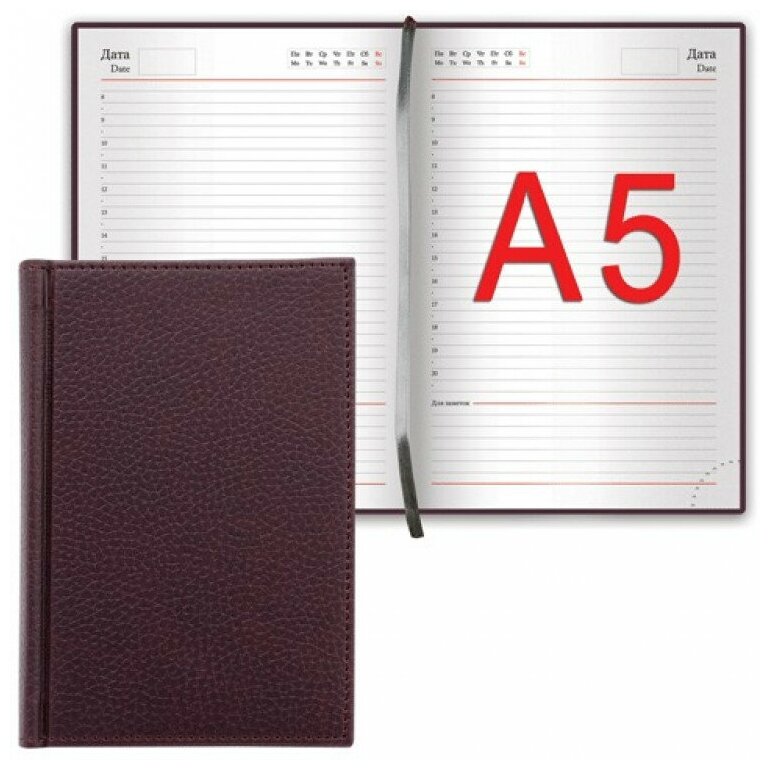 Ежедневник-планер (планинг) / записная книжка / блокнот недатированный формат А5 138х213мм на 160 листов под фактурную кожу, Brauberg Favorite, бордовый