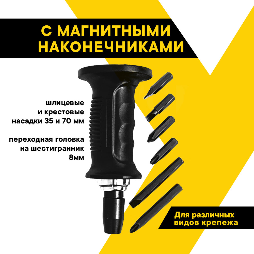 Отвертка ударная 6 насадок анатомическая ручка АвтоДело