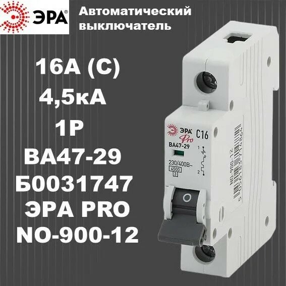 Автоматический выключатель Pro NO-900-12 ВА47-29 1P 16А кривая C. Б0031747 ЭРА информация: