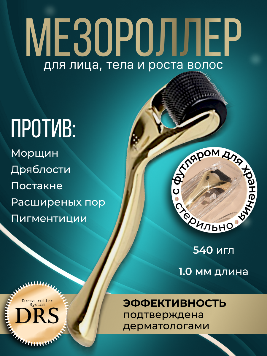 10 цен на DRS Мезороллер для лица и тела на 540 игл длиной 1.0 мм, c титановым напылением