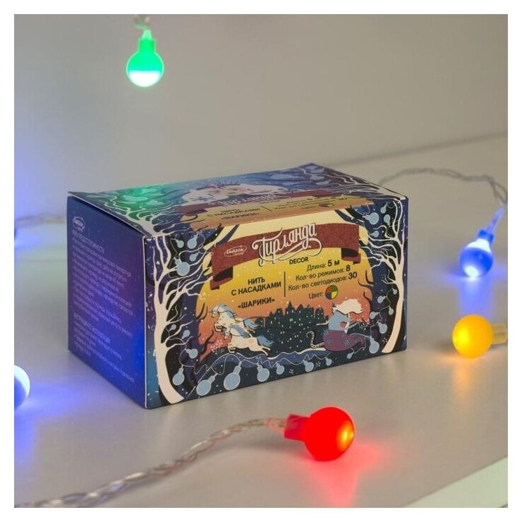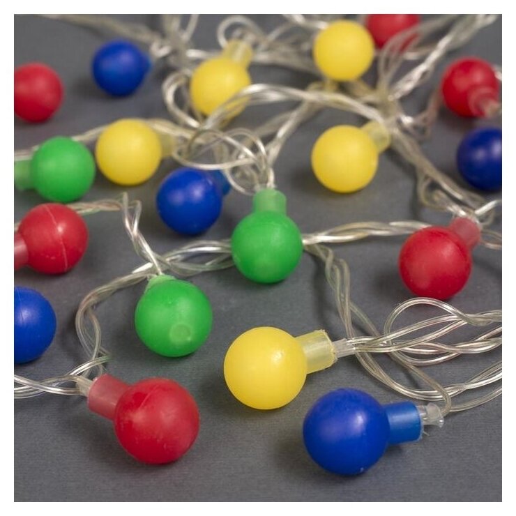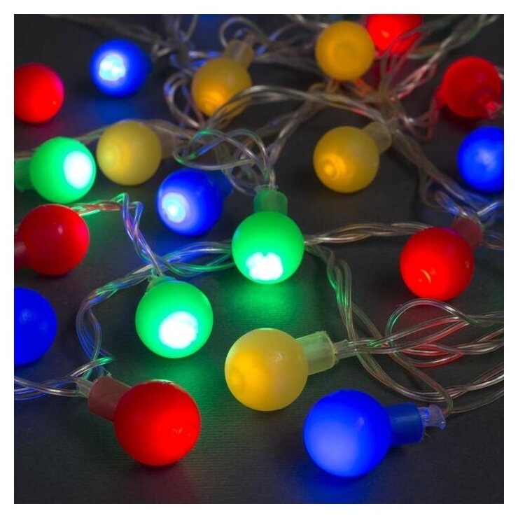 Гирлянда Luazon Lighting Нить с насадками “Шарики Цветные”, 5 м, LED-30-220V, 8 режимов, нить прозрачная, свечение мульти (3590698)