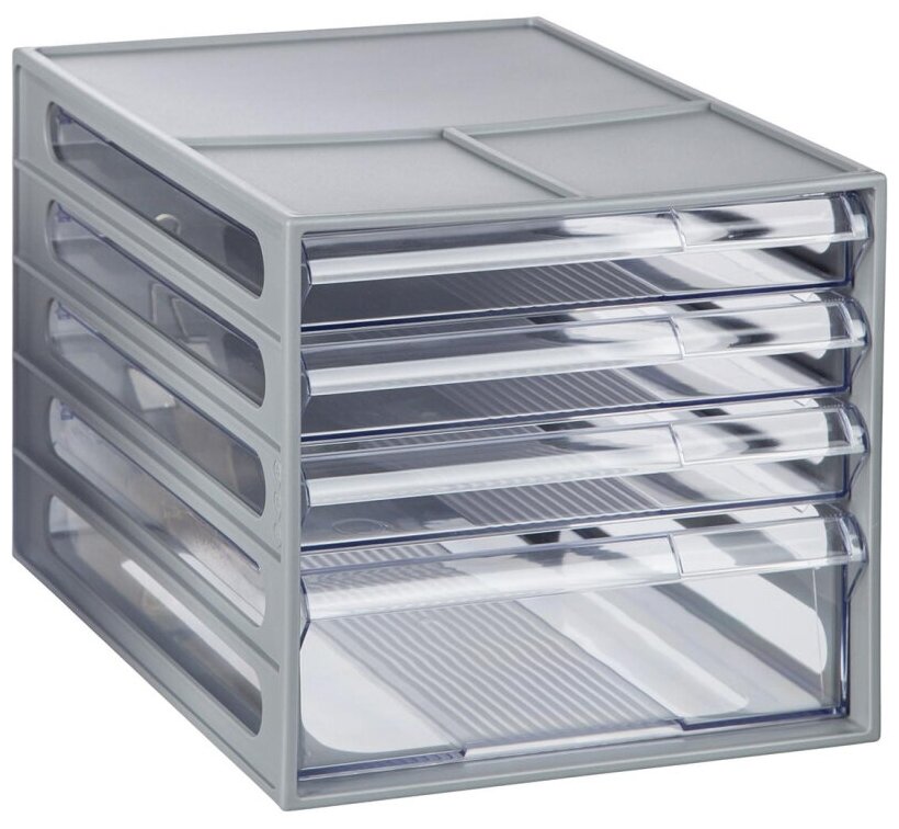 Блок из 4 выдвижных лотков Стамм, серый корпус, прозрачные лотки (арт. 323302)