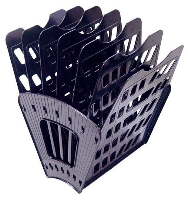 Лоток для бумаг веерный BRAUBERG "Basic" 7-ми секционный 6 отделений сетчатый черный, 1 шт